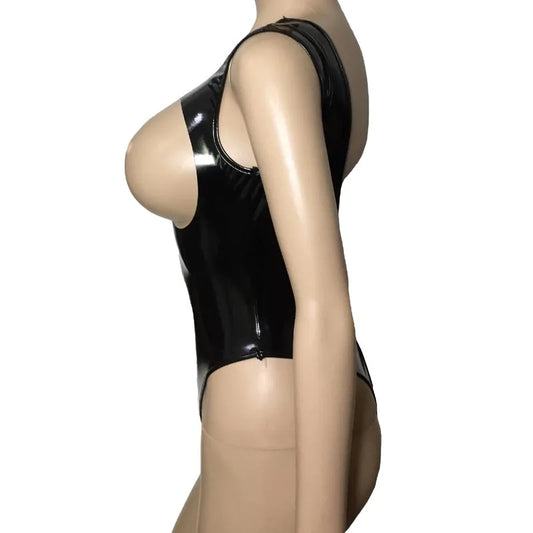 Indulge in the intoxicating allure our Sexy Patent Leather Cupless and Crotchless Leotard.