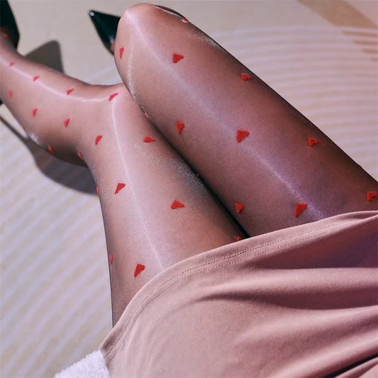 Get the ultimately seductive style with our Sweet-Heart Print Open-Crotch Tights!