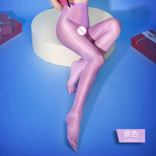 Transform your look with our 15D Shiny Open Crotch Pantyhose