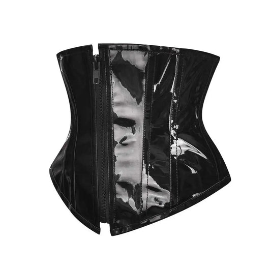 Trasformati in una bellezza sbalorditiva e sicura di te con il corsetto con cerniera in pelle PU nera Steampunk.